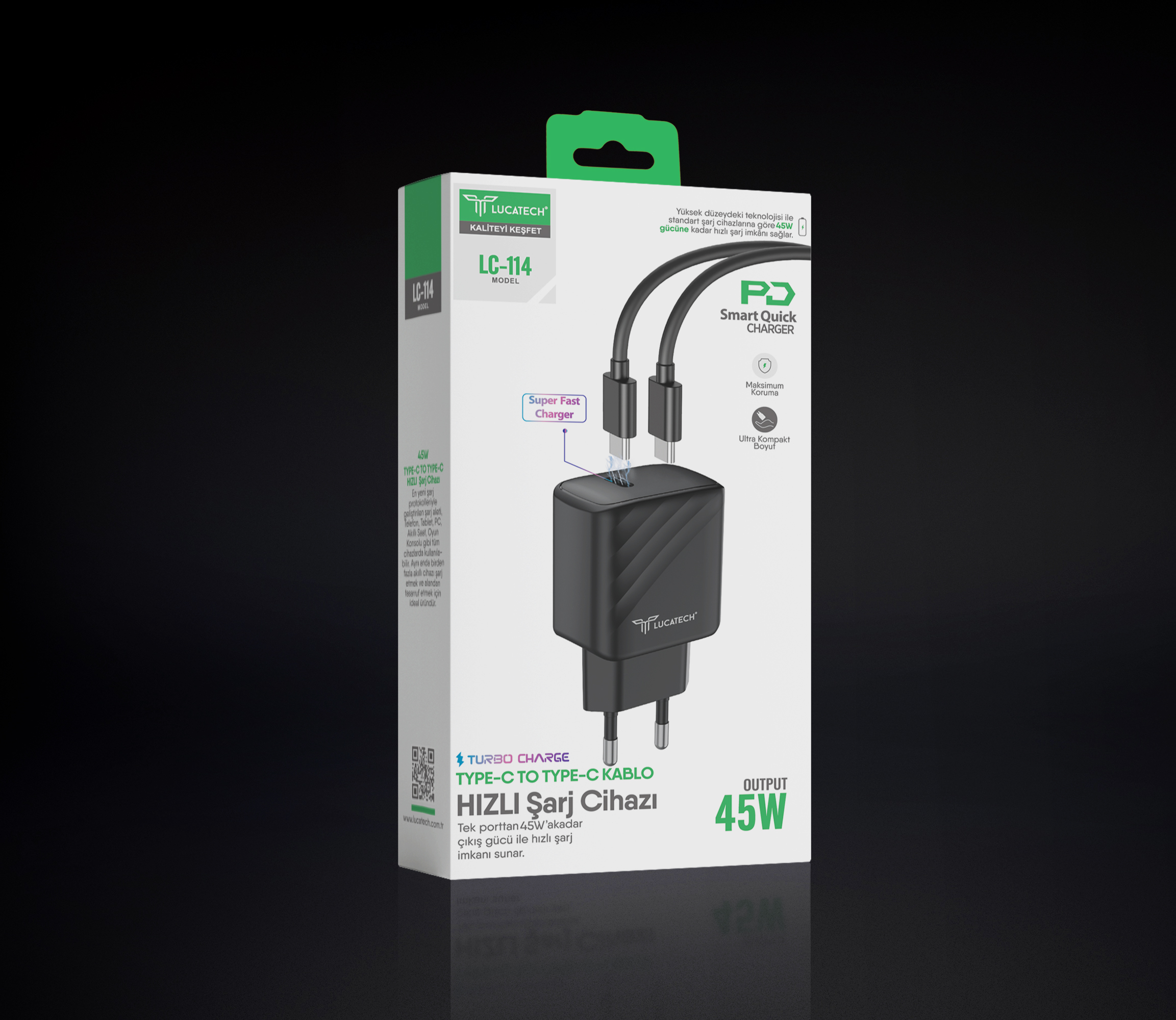 Lucatech LC-114 45W PD Type-C Hızlı Şarj Cihazı (Kablolu)